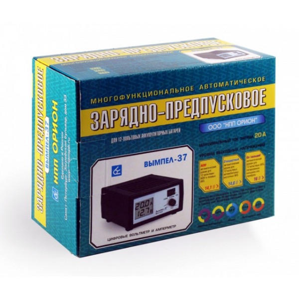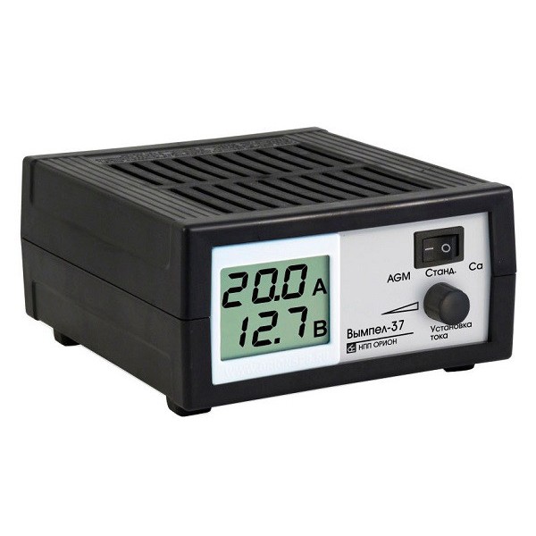 Основное назначение зарядного устройства Вымпел-37 – заряд автомобильных кислотных аккумуляторных батарей, тяговых и лодочных АКБ, АКБ типа AGM, АКБ с гелевым электролитом: Long Life, Deep-Cycle, в том числе полностью разряженных (до нуля), любого типа и емкости, как в полностью автоматическом, так и в неавтоматическом режиме с возможностью ручной регулировки силы зарядного тока. Кроме этого, возможно использование зарядного устройства Вымпел-37 в качестве многоцелевого источника постоянного тока для питания автомобильной аппаратуры, электроинструментов, галогенных ламп и других устройств и приборов. Возможно также использование устройства в неавтоматическом режиме для заряда А.Б. любой электрохимической системы c максимальным напряжением в конце заряда меньше 16 В.